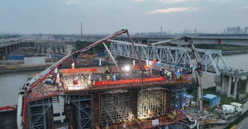 中交三航局三公司滬武高速擴建常州經開區段配套工程HWJK-SG3標項目跨京杭運河懸澆箱梁0號塊澆築完成
