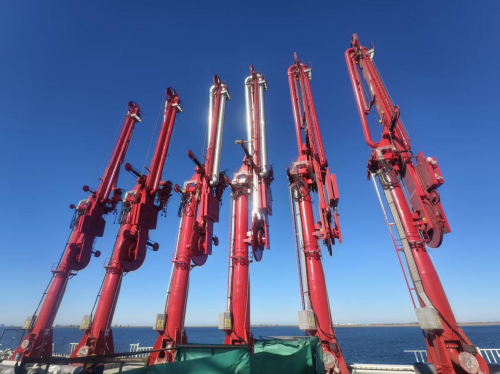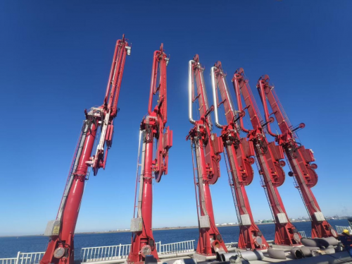 作為該工程的核心設備之一,輸油臂的安裝品質直接關係到液體散貨的裝卸效率與作業安全。此次314#碼頭6臺輸油臂的成功驗收,標誌著專案施工進入攻堅衝刺階段。據統計,該專案共需安裝43臺輸油臂,目前已完成31臺的安裝任務,剩餘未安裝部分僅涉及2個泊位,後續施工將聚焦重點環節,全力推進專案早日投產。