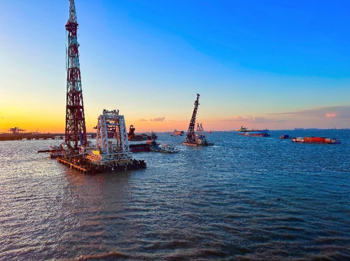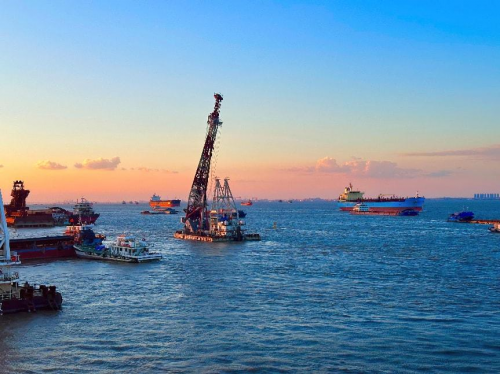 項目位於太倉港武港與華能碼頭之間未利用段,總長383米,中間200米采用鋼管樁CT鎖扣工藝,合同價1.056億元,工期1年。作為長江流域首個超深水、大流速環境下的護岸技術試驗工程,其核心目標是探索長江河勢控制與護岸治理新方案——此前因長江上遊水沙變化、河勢演變等影響,太倉港段近岸河床持續沖刷,威脅港口安全與防洪穩定,項目的推進對守護長江岸線安全、保障區域防洪與港口運營穩定意義重大。