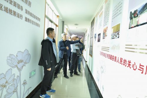 在工作室講解員的引導下,外部董事一行參觀了工作室十米長廊及展廳,通過實物陳列、圖文展板、視頻短片等多種形式,詳細瞭解了工作室依託中交集團資源優勢,在支援民族地區建設、開展文化交流、助力鄉村振興等方面的具體舉措。從援建高原學校的暖心故事,到結對幫扶民族村寨的生動案例,再到各族群眾攜手奮進的鮮活影像,一個個動人場景讓大家深切感受到“中華民族一家親,同心共築中國夢”的深刻內涵。