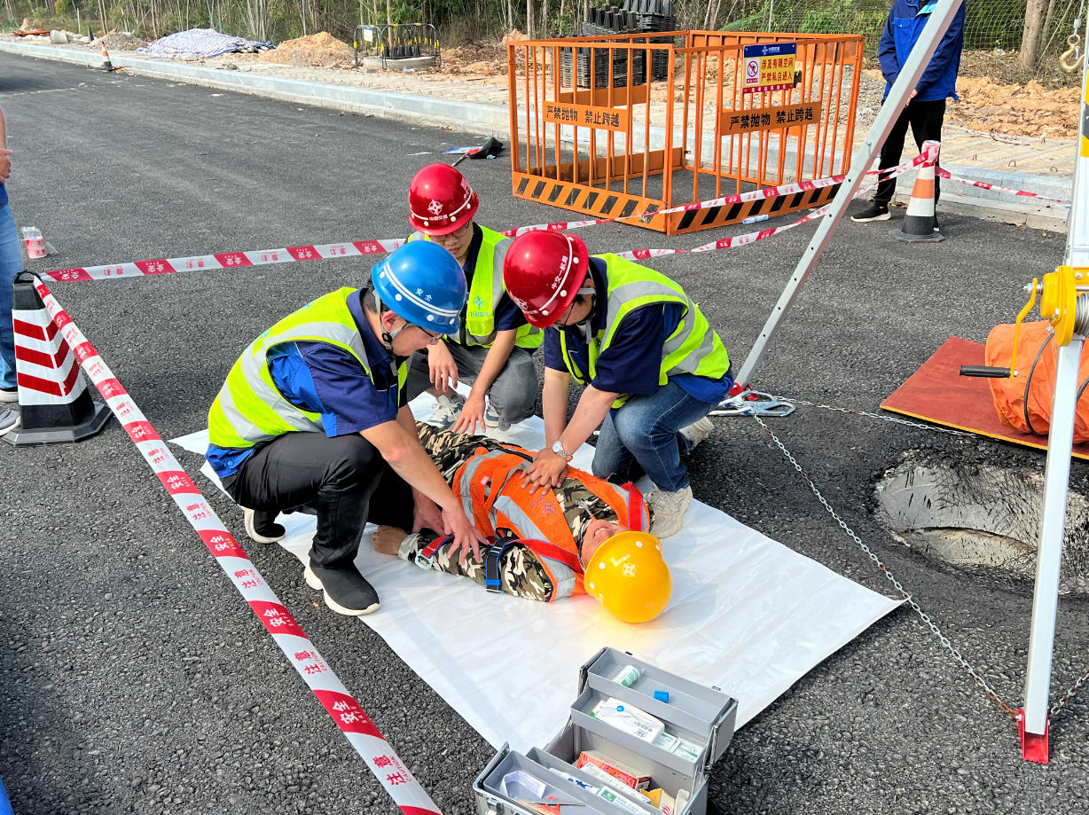 此次演练不仅检验了应急预案的科学性和可操作性,提升了应急队伍的协同作战能力,也进一步强化了全员安全防范意识,为项目后续有限空间作业安全、平稳推进提供了坚实的应急保障。