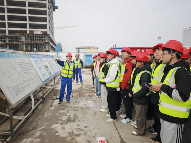 在施工现场,项目技术负责人围绕工程概况、施工工艺、安全管控及技术创新等方面,系统讲解了地铁车站深基坑施工、盾构施工关键技术、大型机械设备应用与智慧工地建设等内容,助力师生将课堂理论知识与工程实践深度融合。交流环节中,学生们围绕专业技术、行业发展与岗位能力等话题踊跃提问,与项目技术人员展开热烈互动。