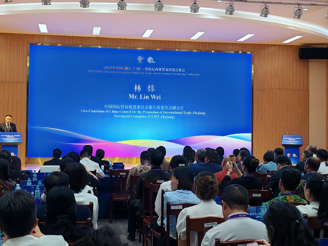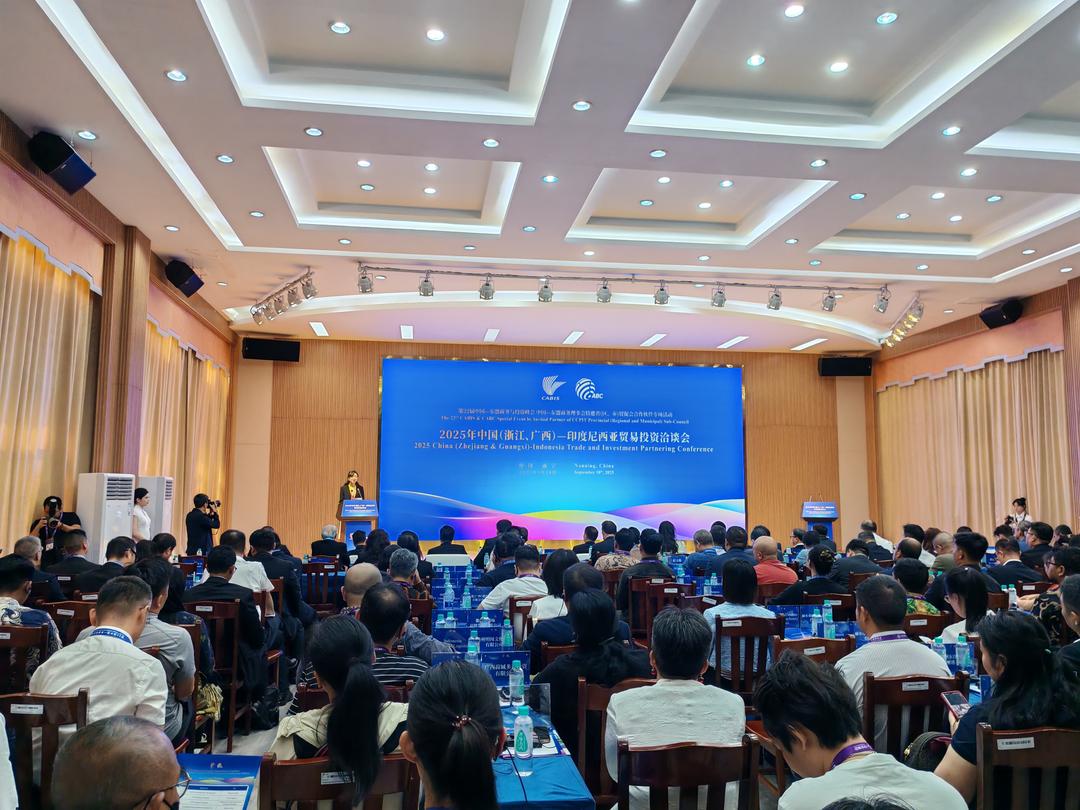 图说:2025年中国(浙江、广西)-印度尼西亚贸易投资洽谈会会场(共工社记者 廖红麟 摄)