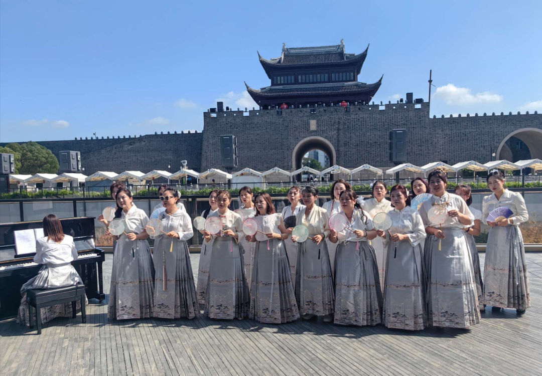 由热爱音乐的女性组成的水当当合唱团,以苏州文化为根基,通过系统训练与专业指导,致力于打造艺术与专业兼具的群众合唱队伍。此次在仓街的演出中,她们以《紫禁花园》《宝岛漫波》《声声慢》《秋蝉》等曲目,融合国乐与合唱,演绎了台湾女性在姑苏扎根奉献、与城市共同成长的三十年历程。她们的歌声刚柔并济,与仓街“古今交融”的空间气质同频共振,成为“女性力量”与“文化共生”的生动诠释。