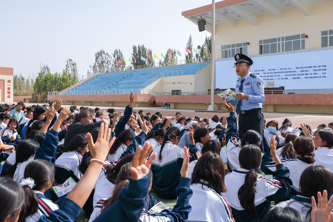 共工新闻社10月2日电(程超、徐贤华)9月27日,新疆维吾尔自治区叶城县公安局禁毒大队民警走进县中等职业技术学校,开展“警惕精神药品滥用,青春无毒更健康”主题宣传活动,通过案例讲解、知识普及等形式,为在校学生送上一堂生动的禁毒安全教育课,切实提升青少年对精神药品滥用危害的认知,筑牢青春无毒防线。