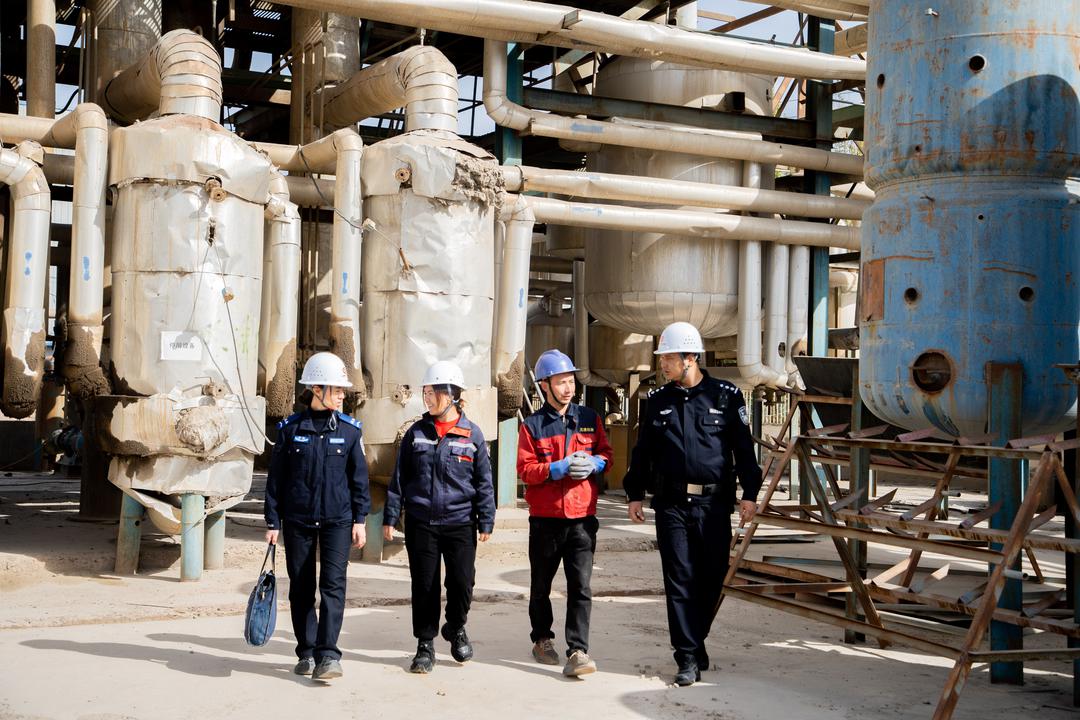 共工新闻社10月20日电(程超、徐贤华)10月17日,新疆维吾尔自治区叶城县东城区派出所深入落实“企业警长”制,组织民辅警走进化工企业,开展秋季安全隐患排查,并依托“线上警企站”提供普法宣传、涉企类诈骗讲解等便企服务,为企业安全生产与便捷办事筑牢坚实保障。