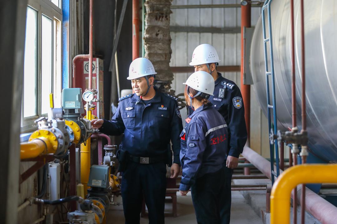 “储罐区消防栓压力是否达标?最近一次应急演练是什么时候开展的?”在某化工有限公司原料存储车间内,“企业警长”米尔夏提·木合塔尔一边仔细查阅设备运行记录,一边向企业安全负责人询问关键环节的安全管理情况。随后,民辅警聚焦车间电路线路、易燃易爆物品存放规范、消防设施配备等秋季高发安全隐患展开重点排查,针对发现的2处消防通道堆放杂物、1处应急照明故障问题,当场提出整改意见,并协助企业制定整改时间表。