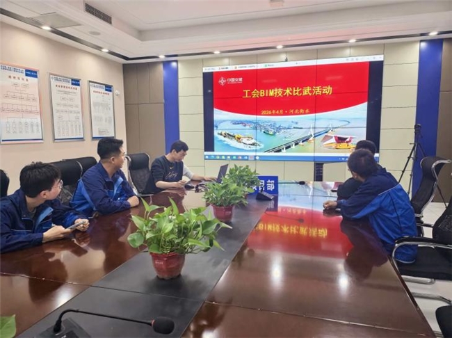 4月19日,石港项目部组织开展 BIM 技术技能比武活动。本次比武依次开展 BIM 成果现场演示讲解、BIM 软件参数化应用实操展示等环节。评审组围绕展示主题、内容完整性、成果制作质量等维度进行综合打分评比。活动现场氛围浓厚,参赛人员相互交流探讨、互学互鉴、共同提升,有效促进专业能力同步进步。